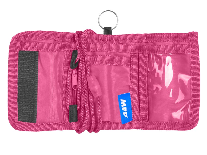 Peněženka má kovový kroužek na klíče a praktickou šňůrku pro zavěšení na krk, díky které ji vaše dítko jen tak nezapomene.