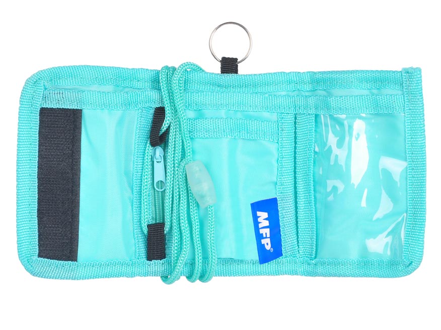 Peněženka má kovový kroužek na klíče a praktickou šňůrku pro zavěšení na krk, díky které ji vaše dítko jen tak nezapomene.