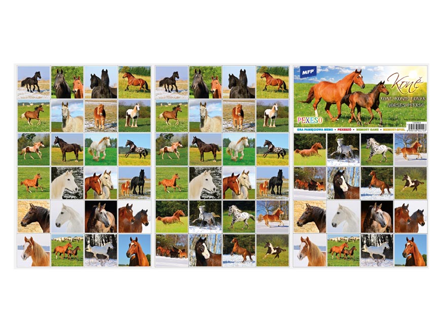 PEXESO je populární dětská stolní hra, která nikdy neomrzí a zapojit se můžou i dospělí. Pexeso – Koně – je vhodné pro milovnice a milovníky koní. Věděli jste, že slovo PEXESO vzniklo souslovím slov PEKELNĚ SE SOUSTŘEĎ? Výborná učební pomůcka pro děti a rodiče. Naučte své děti poznávat zvířata a procvičujte jejich paměť. Tato hra je zabaví na dlouhé hodiny.