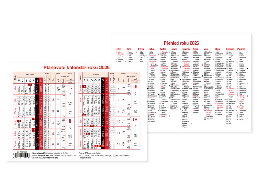 Plánovací karta na rok 2026 ve formátu A5.
