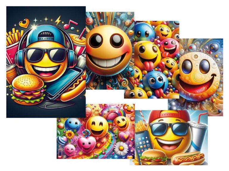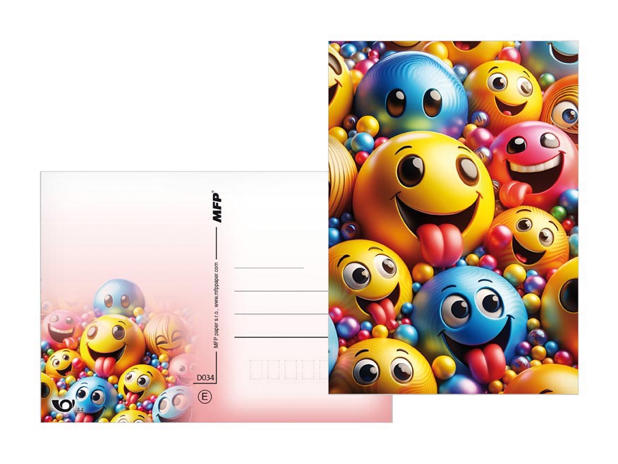 Pohlednice s motivem smajlíků. Pohlednice jsou bez textu na zadní straně.