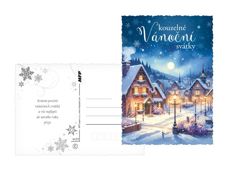 Pohlednice s vánočním motivem. Vánoční pohlednice jsou nejen praktickým způsobem, jak popřát Veselé Vánoce, ale také krásným a tradičním prvkem, který přináší radost a spojuje lidi během svátečního období. Vyberte si u nás z široké nabídky pohlednic s vánočními motivy, které potěší vaše blízké a zpříjemní vánoční čas. Naše pohlednice jsou ideální pro sdílení sváteční atmosféry, přání k Vánocům a vytváření krásných vzpomínek. Text na zadní straně obsahují 3 pohlednice z 6.