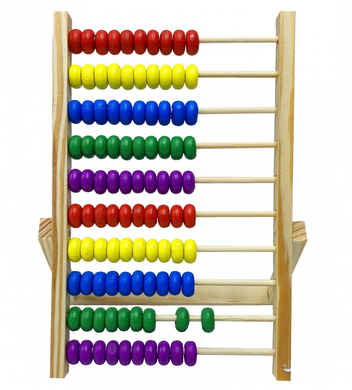 rozměr 17x24cm, dětské dřevěné počítadlo, 10 řad po 10 dřevěných barevných kuličkách, přírodní dřevo