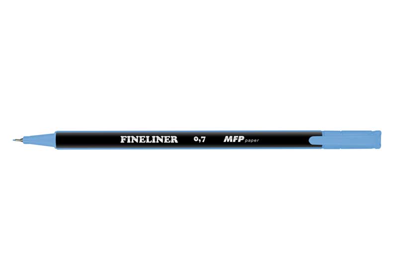 Trojhranný popisovač Fineliner modrý světlý. Důležitá školní a kancelářská pomůcka, která nesmí chybět ve školní výbavě školáka ani na kancelářském stole.