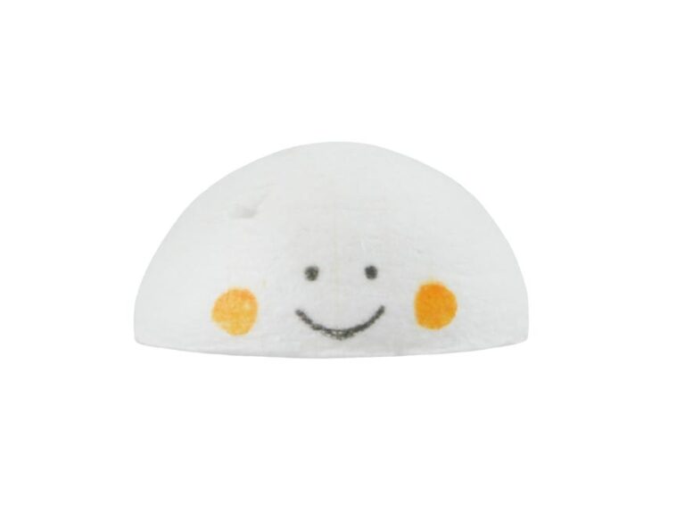 Vatová bílá půlkulička, měkká a lehká s předtištěným motivem obličeje o rměru 32 mm.