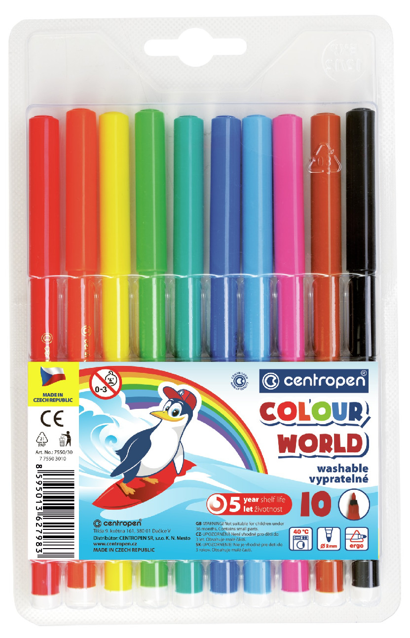 50/ barevný popisovač, ERGO držení, zdravotně nezávadný inkoust odolávají vyschnutí až 5 let, vypratelný,