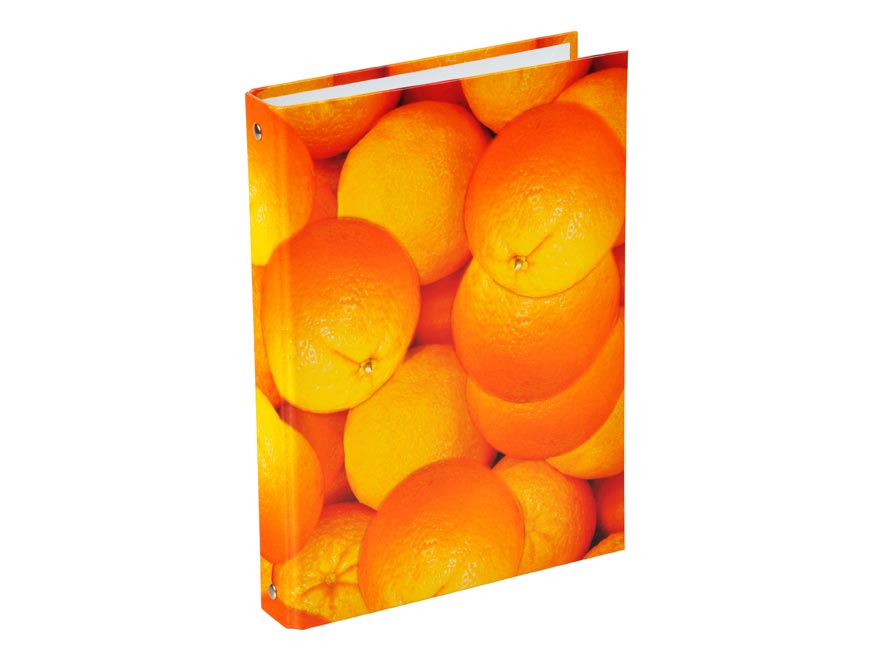 Kroužkový pořadač s motivem pomerančů velikosti A5. Praktický na uchování důležitých dokumentů a listin. Desky jsou vyrobeny z lamina. Hřeben je opatřený 4 kroužky.