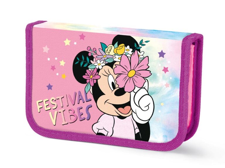 Jednopatrový školní penál s motivem Minie z Mickey Mouse a nápisem "Festival Vibes". Vevnitř