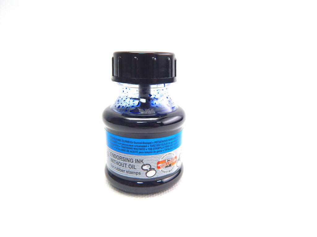 Razítková barva bez oleje je na vodní bázi pro napouštění plstěných podušek. Z podušek se snímá gumovým razítkem na papír.
