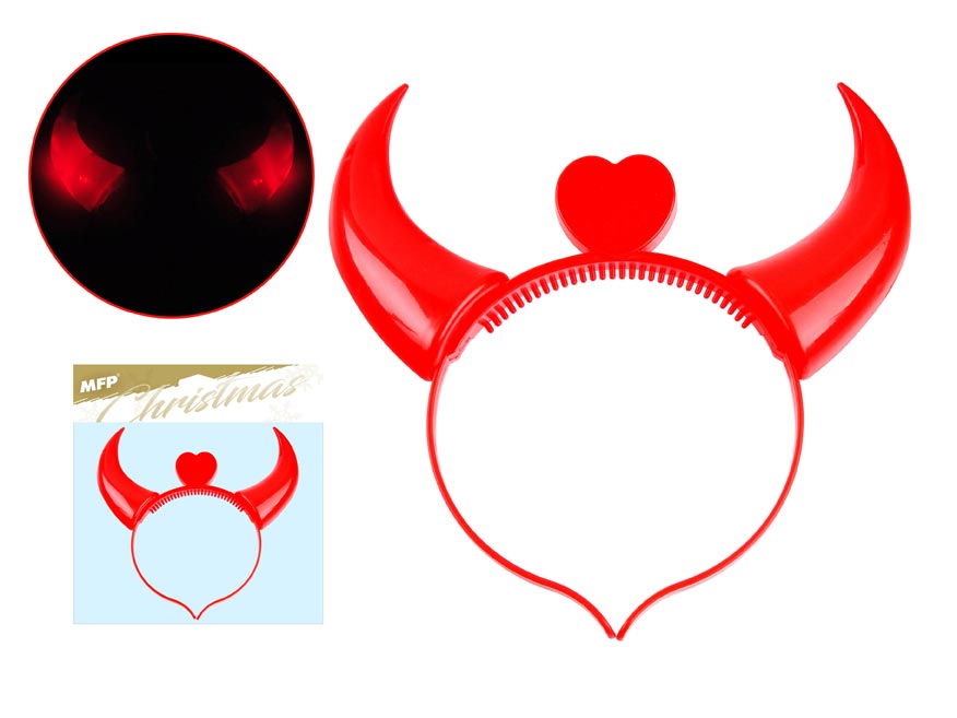 Svítící čertovské rohy. Vánoce bez čerta, jakoby nebyly. Pořiďte si tyto krásné čertovské rohy, které budou skvělým doplňkem pro Váš ďábelský kostým. Rohy mají spínač s možností zapnout a vypnout. Tyto rohy napájí dvě knoflíkové baterie LR41. Baterie se dají vyměnit a jsou součástí balení.