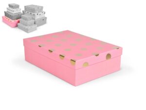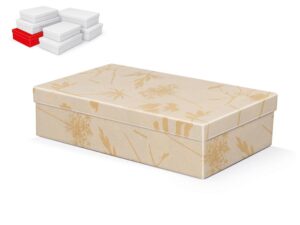 Celoroční dárková krabice o rozměrech 32 x 20 x 8 cm NÁHODNÝ MIX Dárková krabice s květinovými a zvířecími motivy (berušky a ptáčci). Vhodná pro slavnostní příležitosti, dekorativní účely, balení osobních darů nebo k uschování různých drobností. Při vložení jedné krabičky do košíku se automaticky přidá celá sada, která zahrnuje krabičky s různými designy a velikostmi. Krabičky jsou navrženy tak, aby k sobě ladily barvami a vzory, čímž vytvářejí harmonickou sadu ideální pro každou příležitost. Díky tomu budete mít vždy po ruce krabičky vhodné pro různé příležitosti a typy dárků. Materiál: 1,5 mm karton, potažený papírem s potiskem Set obsahuje tyto krabice: 5371224 Krabice dárková A-C009-A 24x16x6 cm 5371225 Krabice dárková A-C009-B 26x17x6 cm 5371226 Krabice dárková A-C009-C 28x18x7 cm 5371227 Krabice dárková A-C009-D 30x19x7 cm 5371228 Krabice dárková A-C009-E 32x20x8 cm 5371229 Krabice dárková A-C009-F 34x22x8 cm 5371230 Krabice dárková A-C009-G 36x22x9 cm Uvedená cena je za 1 ks.