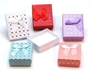 12/ dárková krabička s laserovým lesklým potiskem a textilní mašličkou, rozměr 7 x 9 x 3 cm, mix 6 barev