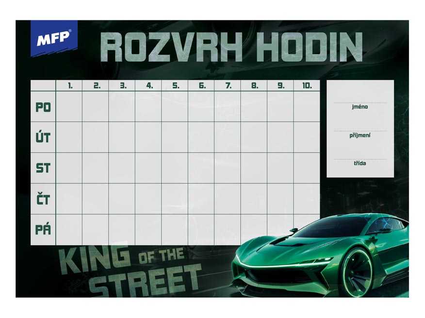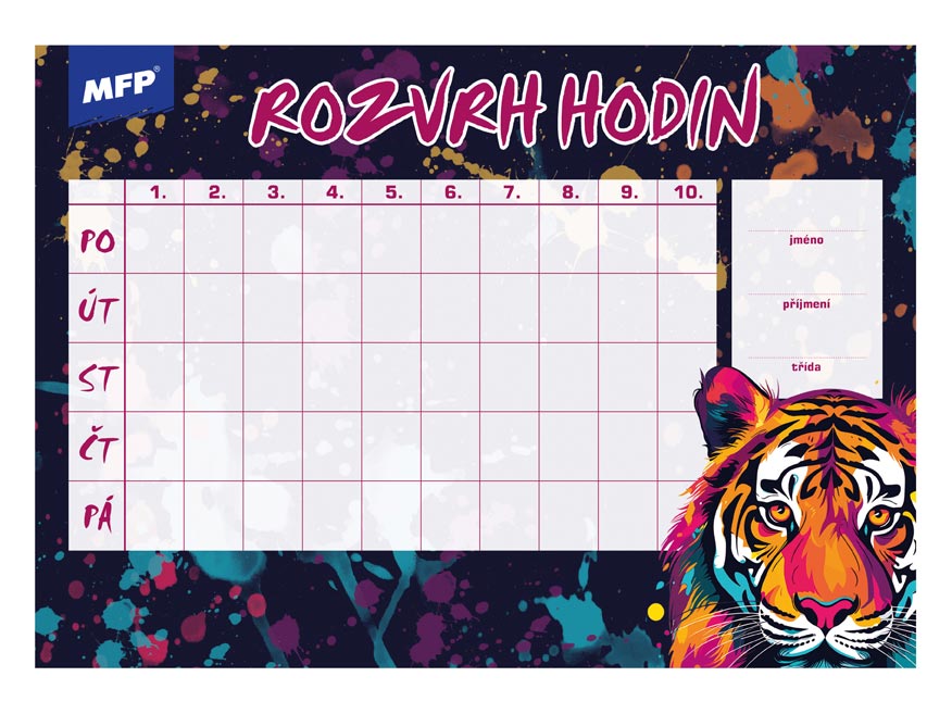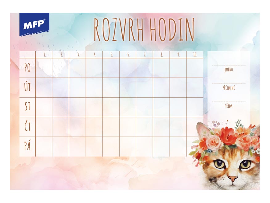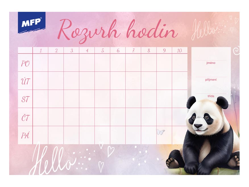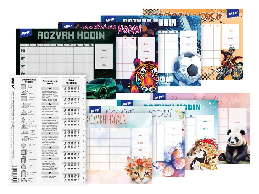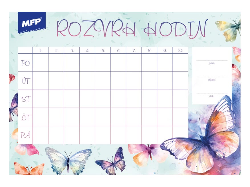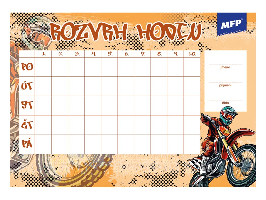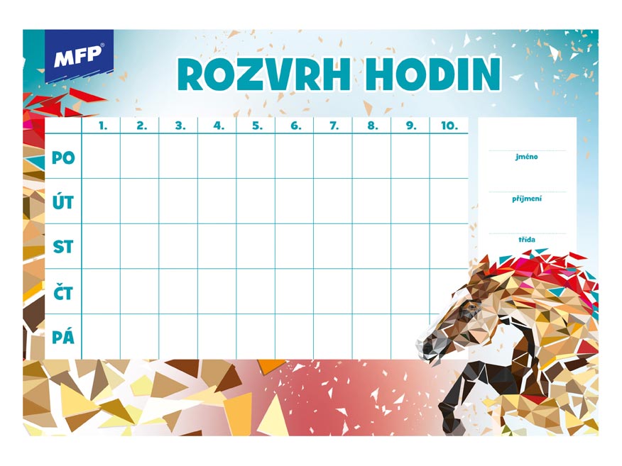 Dětský rozvrh hodin – vhodný pro rozvržení školních předmětů s dalšími školními pomůckami