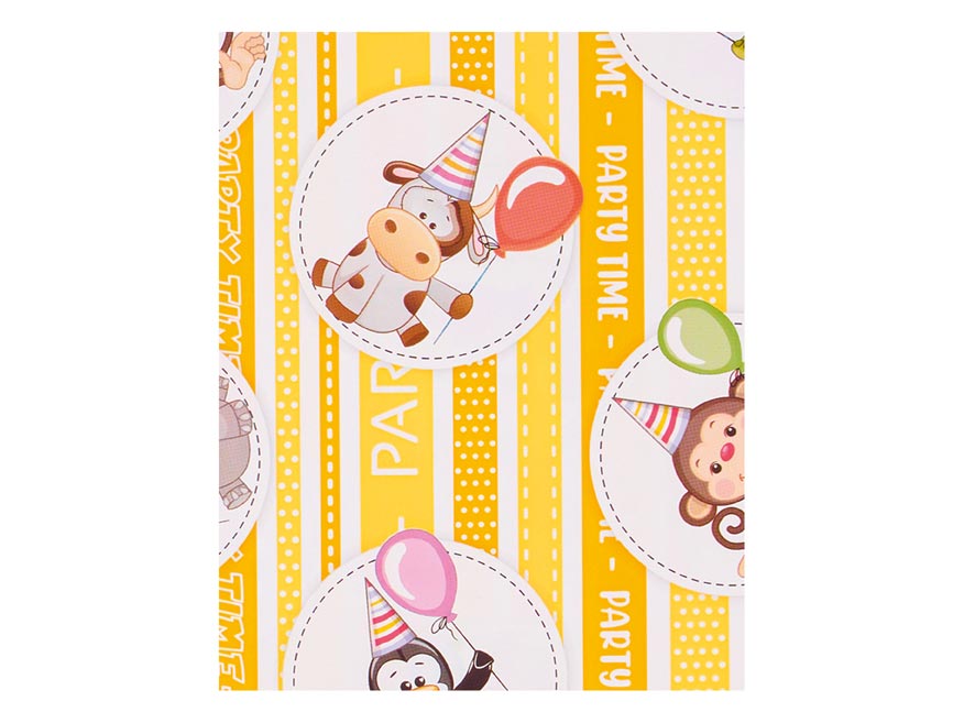 Dárkový sáček v mixu barev s dětskými motivy (opička, hrošík, kravička, tučňák). Skvělý na zabalení drobných dárků. Sáček můžete uzavřít vázací stuhou a tím ho dozdobit. V naší nabídce naleznete velký výběr stužek a rozetek, které Vám pomohou při dekoraci balíčku.