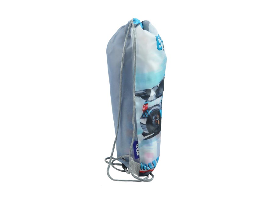 Školní sáček na přezůvky se šňůrkou na zatažení s obrázkem závodního auta. Pořiďte svým dětem školní vak na přezůvky nebo cvičební úbor. Od této chvíle totiž děti nemusí hledat přezůvky po celé šatně, ale mají je na jednom místě.