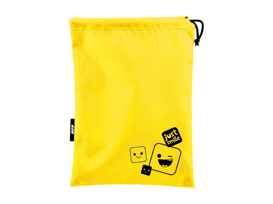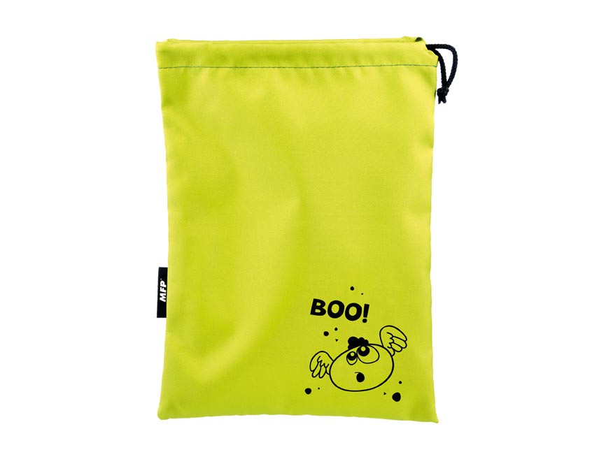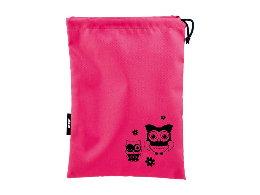 Nahoře možnost stáhnutí šňůrkou. Pytlík na přezůvky je vyrobený z pevné a odolné látky. Velice snadno omyvatelný vlhkým hadříkem.