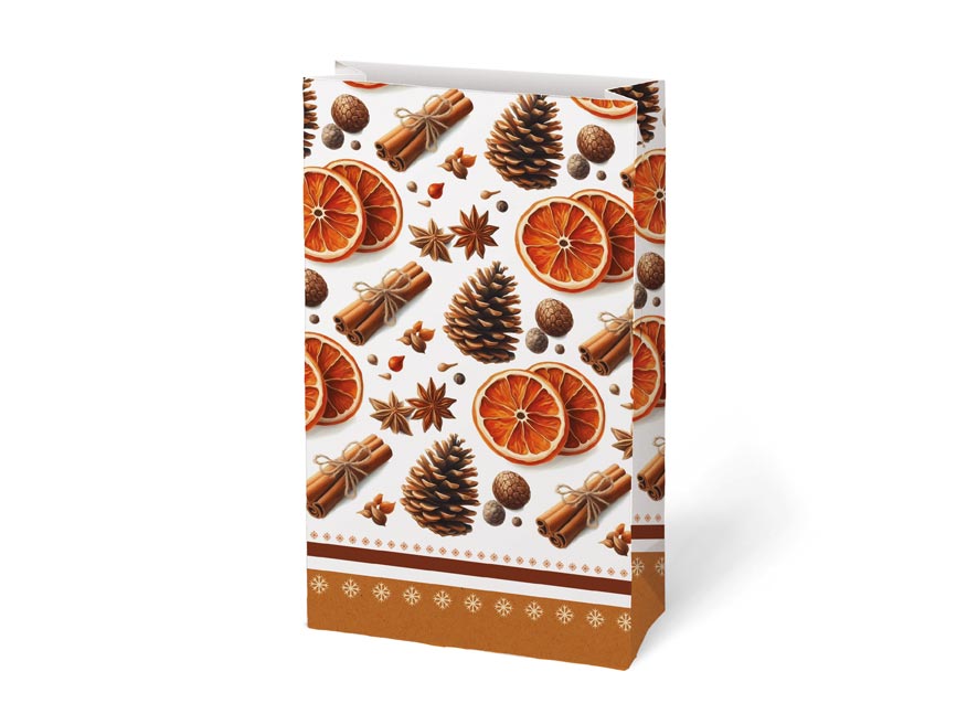 Dárkový papírový sáček KRAFT 3 s vánočním motivem vyrobený z pevného kraftového papíru. Je ideální na zabalení malého dárku, sladkostí, oříšků nebo sušeného ovoce. K uzavření sáčku můžete použít dekorativní kolíček, samolepící jmenovku nebo stuhu a vytvořit tak jedinečný dárek.