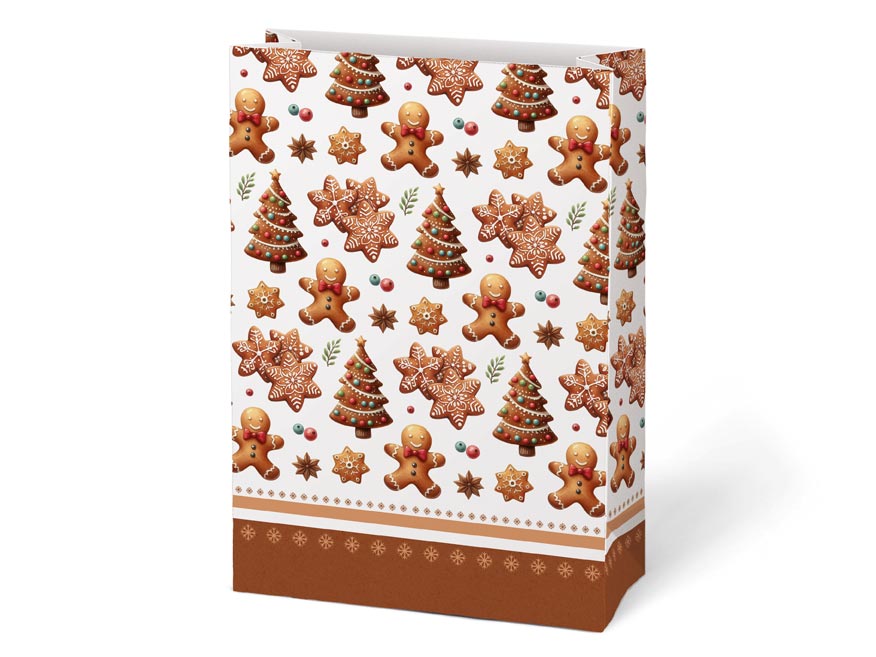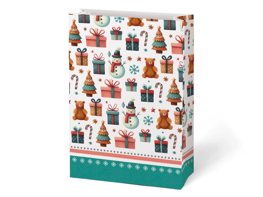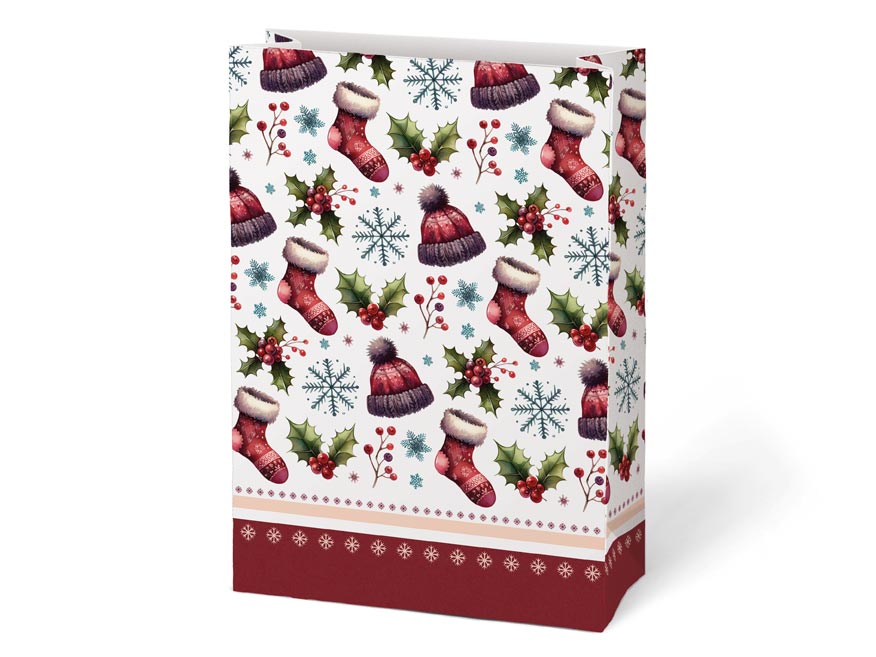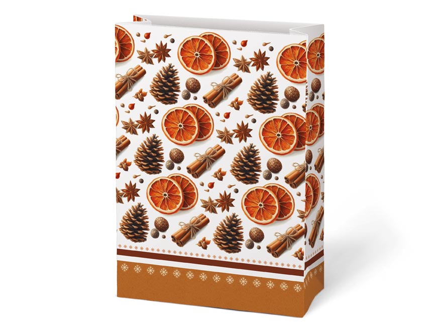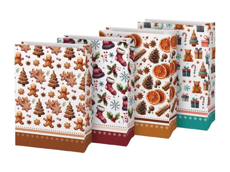 Dárkový sáček v mixu vánočních motivů. Každý motiv je detailně zpracován s důrazem na tradiční vánoční prvky. Sáček je vyroben z pevného kraftového papíru. Tento elegantní dárkový sáček je ideální volbou pro prezentaci vašich vánočních dárků, které získají nádech luxusu. Ideální pro balení menších dárků, sladkostí nebo drobných pozorností. Tento sáček kombinuje praktické využití s krásným designem, což z něj činí ideální volbu pro každého, kdo chce své dárky zabalit rychle, ale přitom vkusně.