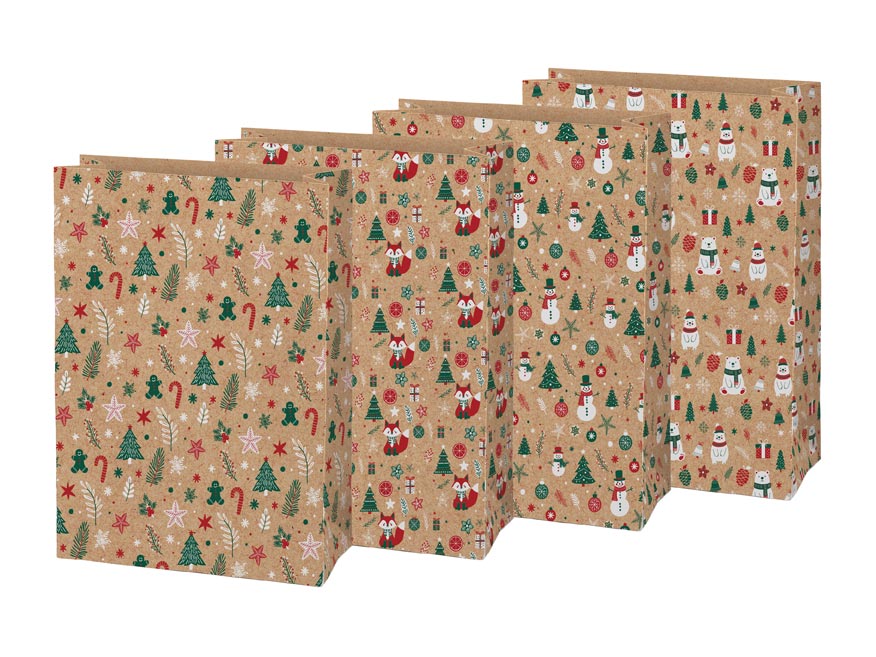 Sáček papírový vánoční KRAFT 4 26x36x12cm mix