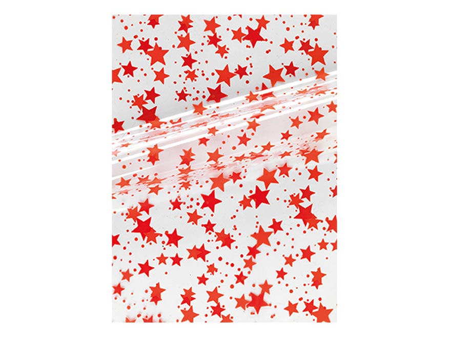 Vánoční průhledný celofánový sáček s motivem hvězd v červené, stříbrné nebo zlaté barvě. Vyrobený z luxusního celofánu s potiskem. Skvělý na zabalení drobných dárků. Sáček můžete uzavřít vázací stuhou a tím ho dozdobit.