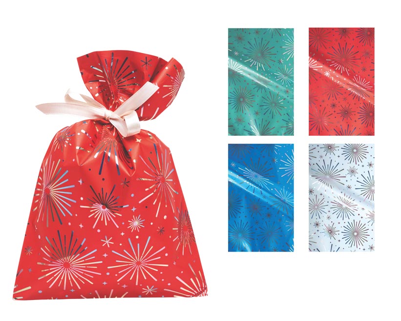 Vánoční dárkový sáček Iride září jako zimní obloha plná ohňostrojů a hvězd. Elegantní lesklý potisk s motivem rozjasněných hvězdic dodává každému dárku slavnostní kouzlo, které se hodí nejen k Vánocům, ale i k novoročním oslavám.