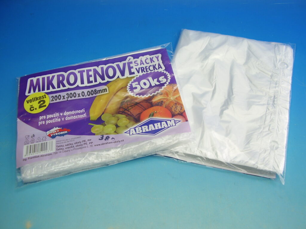 20/ HDPE, sáčky s ušima, transparentní, rozměr 22 + 11 x 45 cm, 200 ks v roli, cena za roli