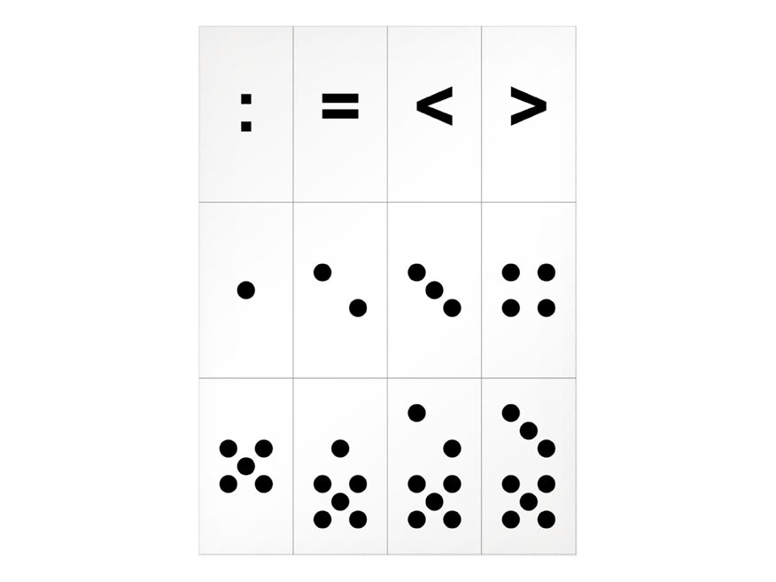 – znaky ve tvaru černých teček různého počtu