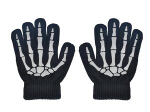 Efekt, který překvapí! Hledáte doplněk, který z kostýmu udělá něco speciálního? Dětské prstové rukavice (15 cm) s motivem svítící kostry se po nasvícení jemně rozzáří ve tmě a dodají každému převleku pořádnou dávku tajemna. Skvěle se hodí na Halloween, karnevalové oslavy nebo jen tak pro zábavu. Navíc udrží ruce v teple během chladných dnů, takže mají i praktickou stránku. Měkká a pružná pletenina se přizpůsobí ruce a pružný lem zajistí, že rukavice drží na místě a pohodlně sedí. Balení: 1 pár Velikost: dětská (15 cm) Materiál: jemná, pružná pletenina Potisk: fosforeskující (svítí ve tmě po nasvícení) Upozornění: Nevhodné pro děti do 3 let (obsahuje malé části). Uvedená cena je za 1 pár.