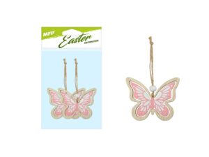 Krásná velikonoční dekorace v designu dřevěného růžového motýla se závěsem, poslouží jako dekorace do exteriéru nebo na zkrášlení interiéru. Dekorace má provázek na zavěšení. Balení obsahuje: - 2 ks dekorací (motýl) Velikost: 70 mm Dodáváme v sáčku se závěsem. Uvedená cena je za 1 balení.