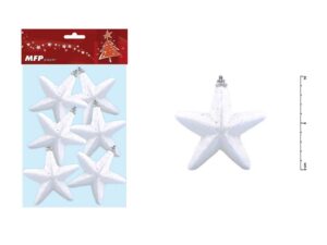 Vánoční dekorace - bílá hvězda s glitrem BALENÍ OBSAHUJE: - 6ks hvězd Součástí hvězdy je i stříbrné očko s provázkem na zavěšení. Ideální na výzdobu do oken či na vánoční stromeček. Díky glitrům se tato vánoční ozdoba na světle nádherně leskne. Uvedená cena je za 1 balení. Dodáváme v sáčku se závěsem.