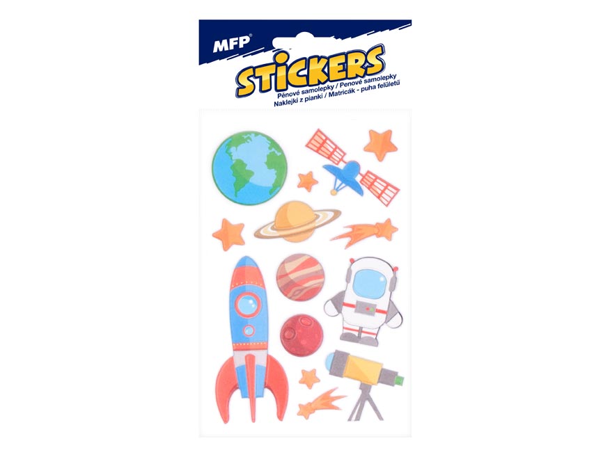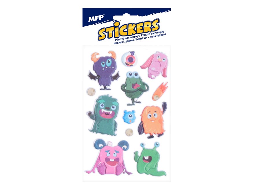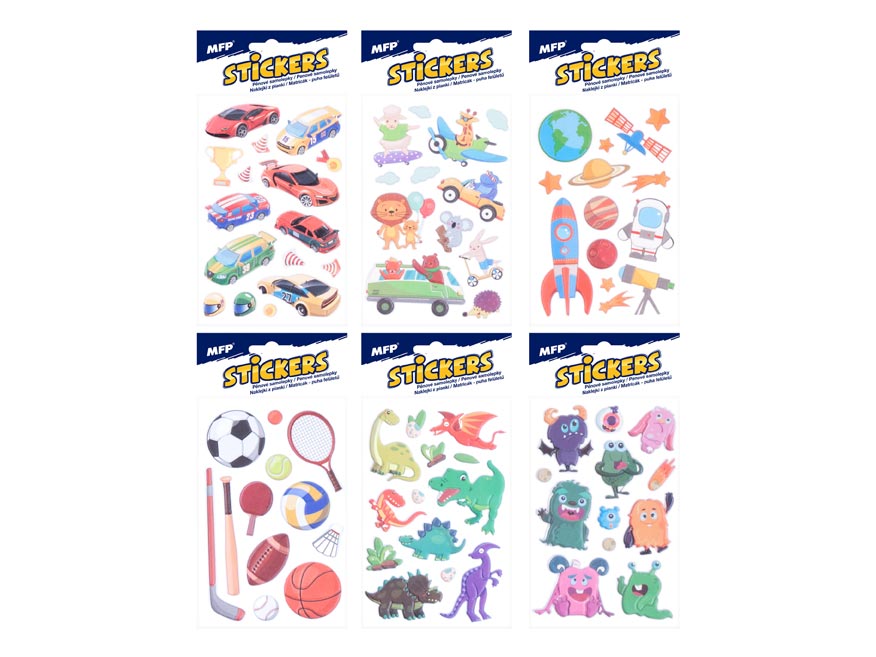 Samolepky s obrázky dinosaurů, příšerek, vesmíru, sportovního vybavení a dopravních prostředků. Vhodné jako dekorace do sešitu, bloku nebo přání. Vyzdobte si těmito krásnými samolepkami, které vynikají svou barevností cokoliv vás napadne, třeba dárek, obálku, přáníčko, sešit, mobil, zrcadlo aj.