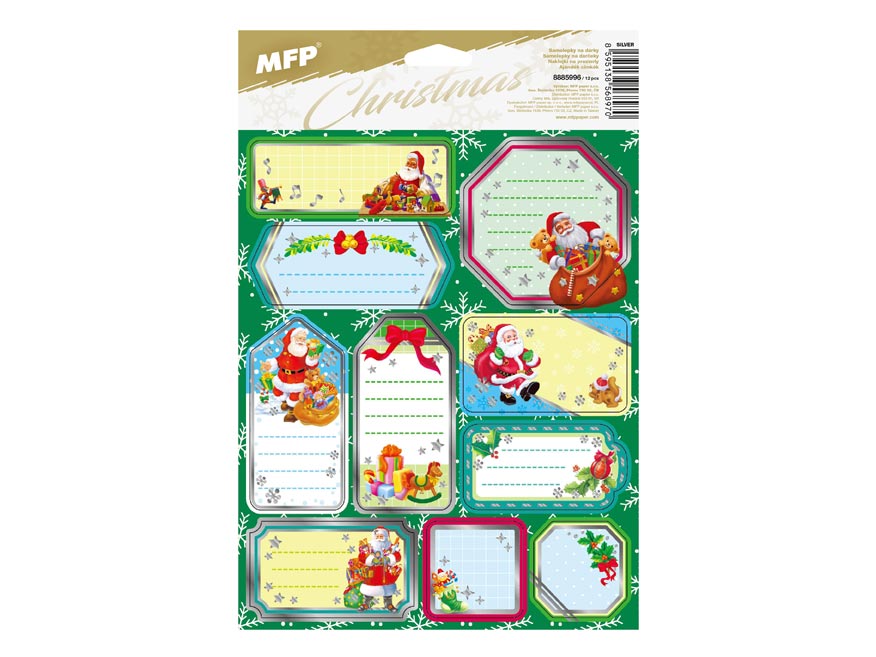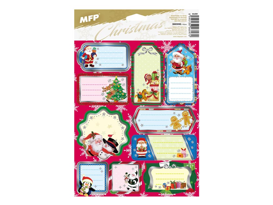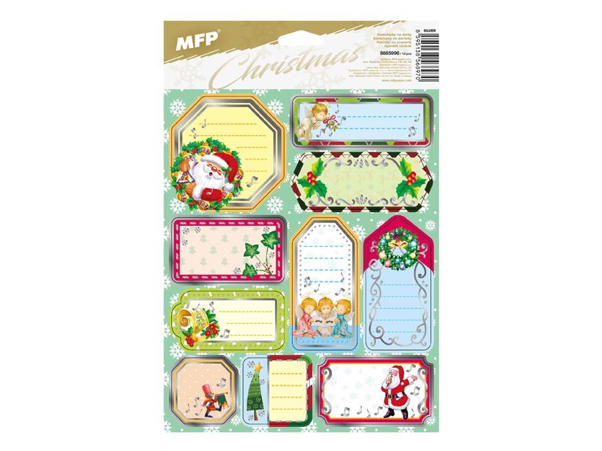 Samolepky na dárky vánoční stříbrné 200x300mm/10ks