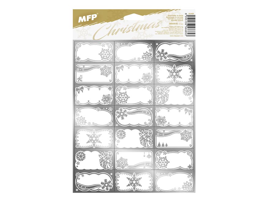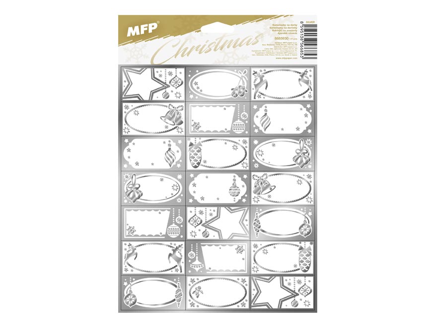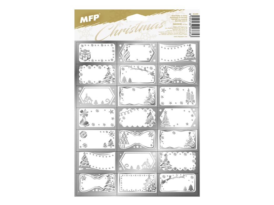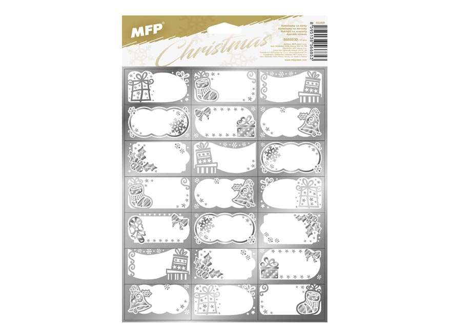 Samolepky na vánoční dárky. Každý dárek musí být podepsaný a k tomu slouží tyto krásné stříbrné samolepky.