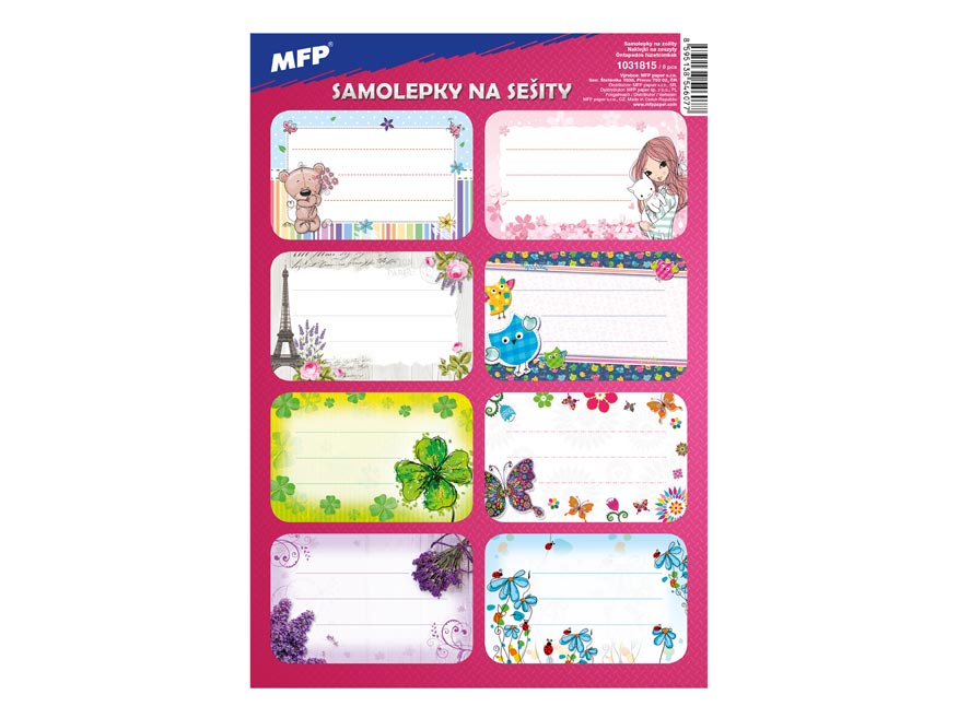 Samolepky na sešity. Krásný design samolepicích jmenovek na sešity zkrášlí každý obyčejný sešit!