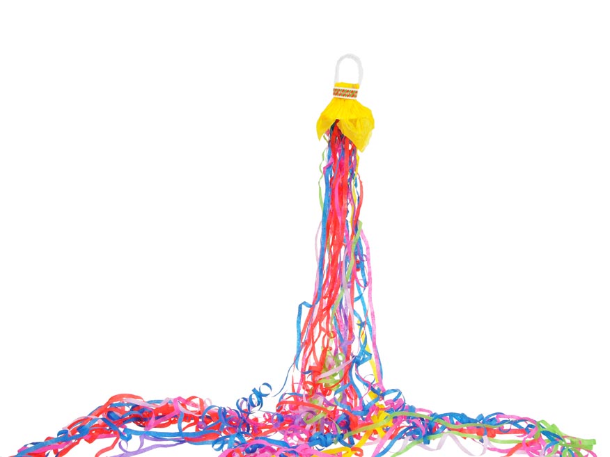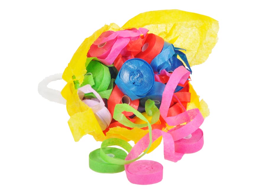 Pytlík s s papírovými serpentýnami pro hození rukou. 29 kusů 6 m dlouhých papírových serpentýn.