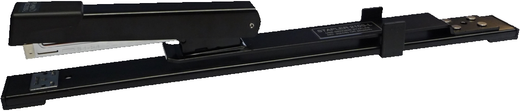 Celokovová sešívačka s dlouhým krkem, kvalitními ocelovými komponenty, mechanismus pro rychlé doplnění, protiskluzová úprava.