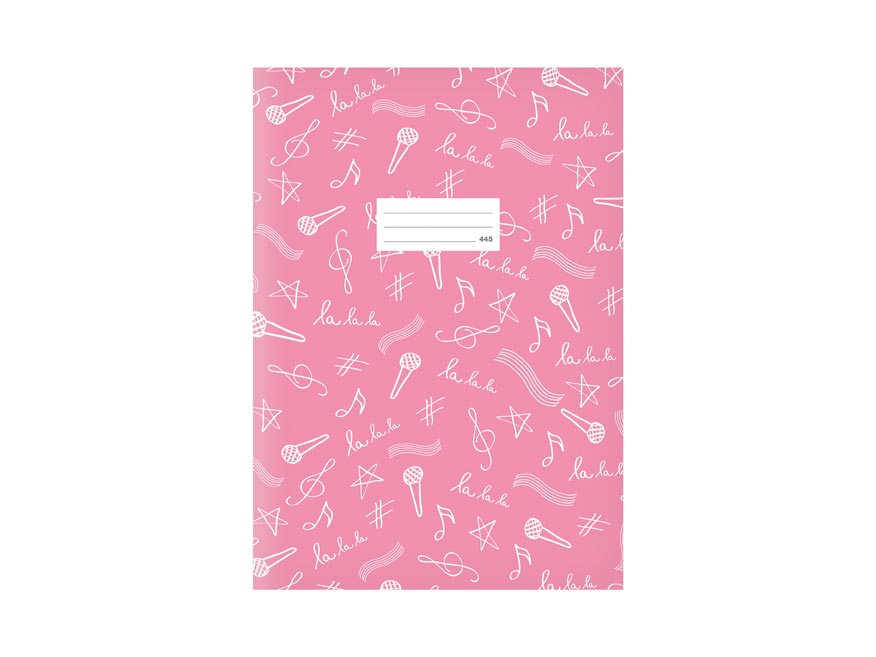 Školní sešit ve formátu A4, čtverečkovaný, v růžové barvě, v originálních deskách s matným laminem a lokálním UV lakem. Stránky jsou opatřené okraji o šířce 1,5 cm.