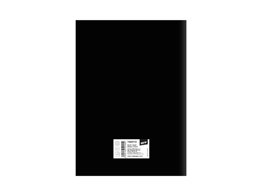 Školní sešit čtvereček ve formátu A4, v černé barvě, s originálními deskami s matným laminem a lokálním UV lakem.Stránky jsou opatřené okraji o šířce 1,5 cm.