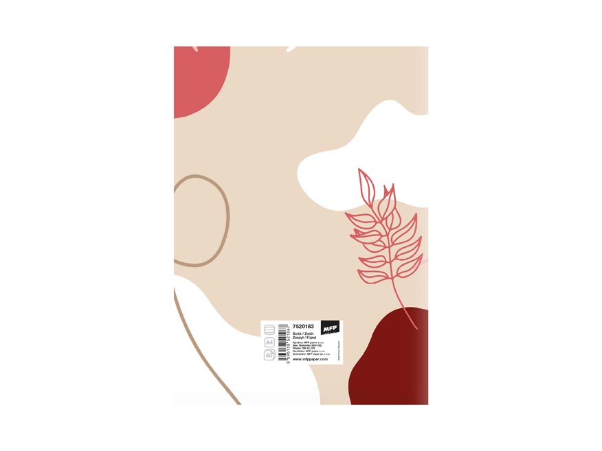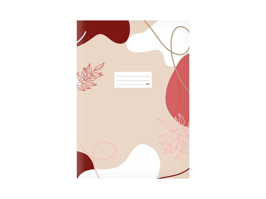 Školní sešit s linkou ve formátu A4, v červeno – béžové barvě, s originálními deskami s matným laminem a lokálním UV lakem. Stránky jsou opatřené okraji o šířce 1,5 cm.