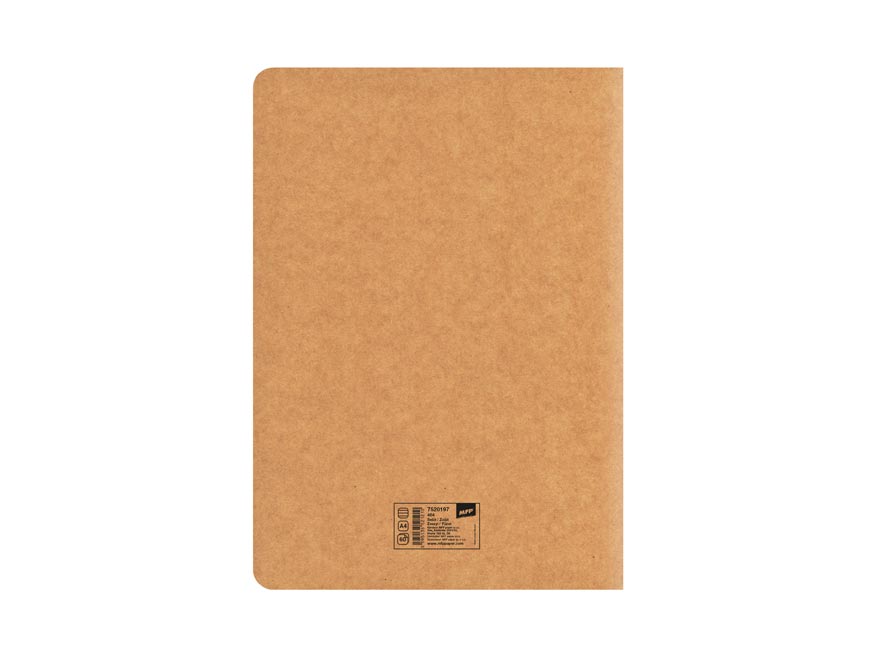 Školní sešit s linkou ve formátu A4, v hnědé barvě, s motivem jing – jang, v originálních deskách z kraftového papíru. Stránky jsou opatřeny okraji o šířce 1,5 cm.