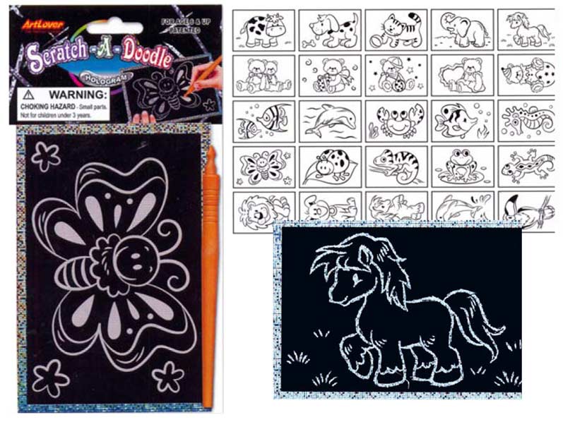 Mix škrabacích obrázků s hologramovým podkladem – mix zvířátek – udělejte si pohodové kreativní odpoledne s dětmi a vyškrabejte si obrázek.