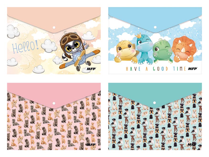 Složka z PolyPropylenu (PP), která se zavírá pomocí druku ve formátu A4, s dětským potiskem, v pastelových barvách. Složka slouží jako pomocník pro třídění a ukládání dokumentů, takže je budete mít vždy pohromadě.
