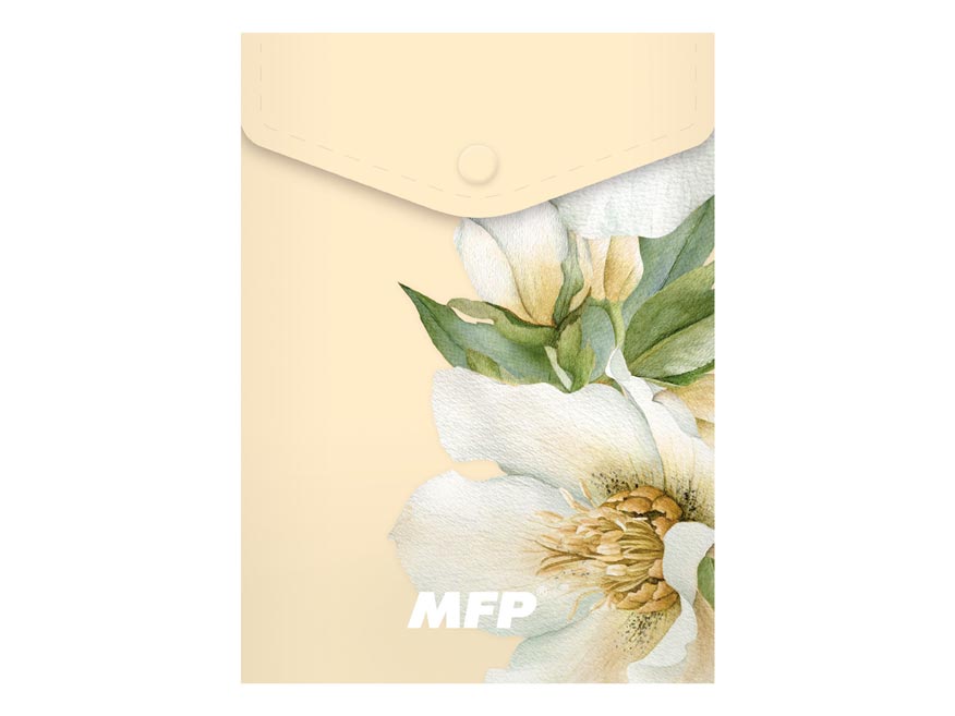 Složka z PolyPropylenu (PP), která se zavírá pomocí druku, ve formátu A6, s květinovým motivem. Složka slouží jako pomocník pro třídění a ukládání dokumentů, takže je budete mít vždy pohromadě.