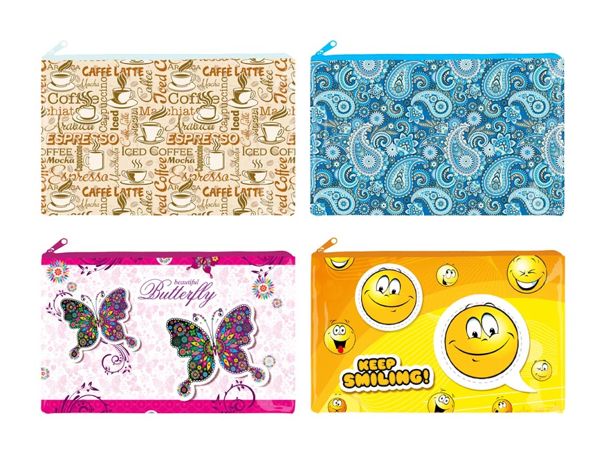 PP složka A5 na dokumenty, se zipem, v mixu motivů a barev. Složka slouží jako pomocník pro třídění a ukládání dokumentů, takže je budete mít vždy pohromadě, vhodná i na psací potřeby a další pomůcky.