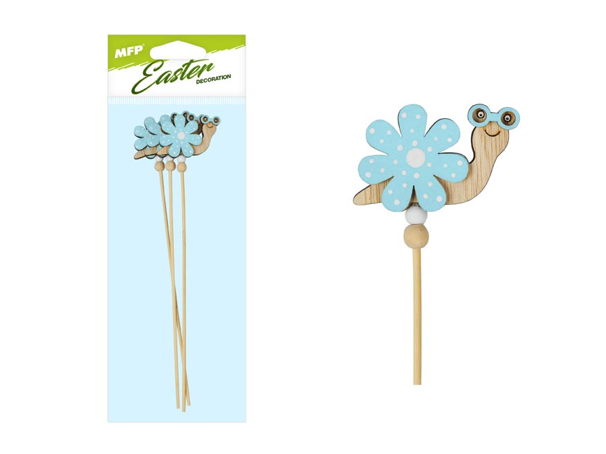 Krásná velikonoční dekorace dřevěné květiny s barevným šnekem. Barevný zápich je ideálním doplňkem do Vašich jarních truhlíků.