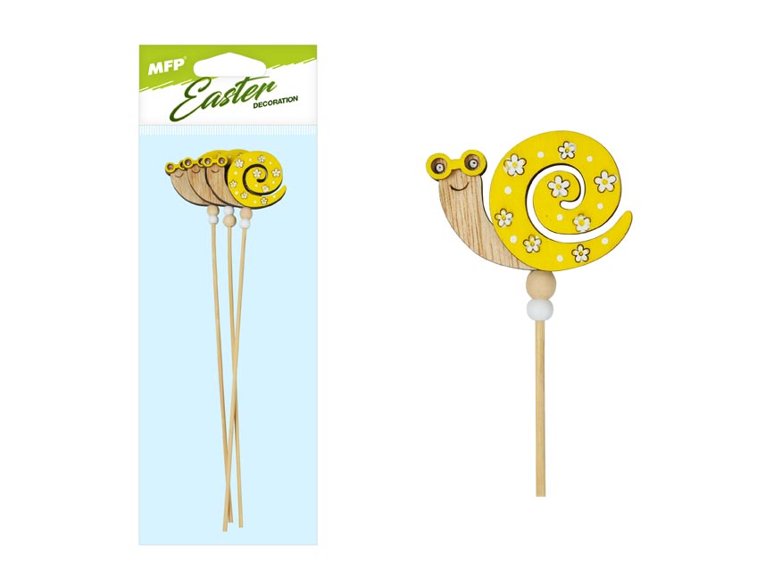 Dřevěná velikonoční dekorace veselého šneka. Barevný zápich je ideálním doplňkem do Vašich jarních truhlíků.