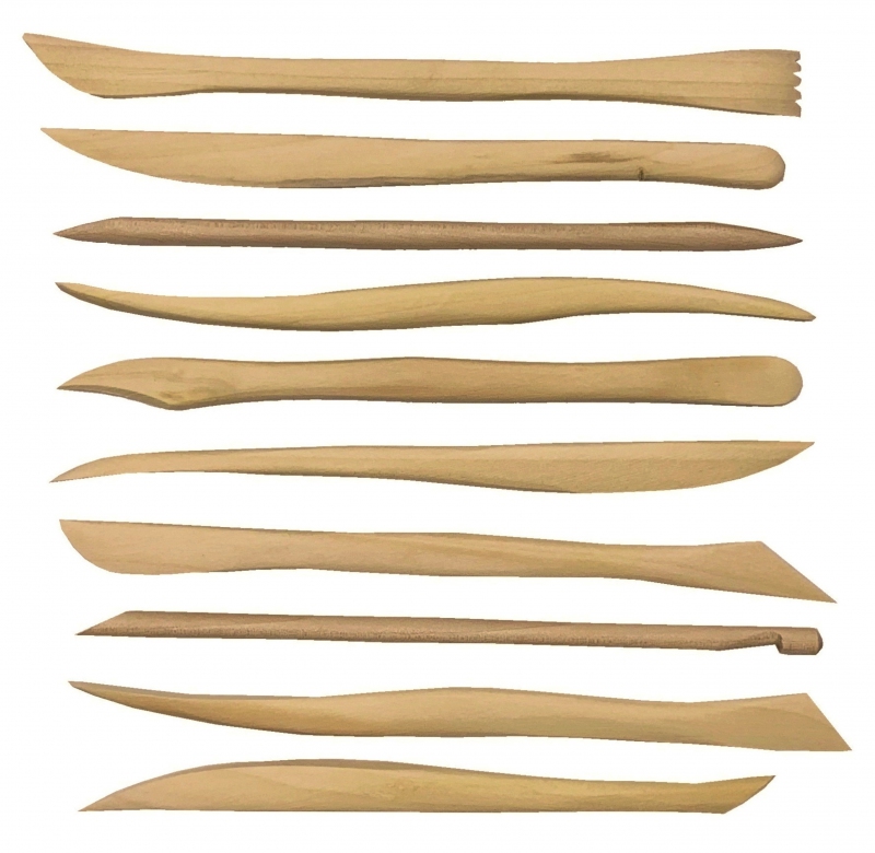 12/ oboustranné dřevěné modelovací pomůcky na vyřezávání a modelování, vhodné pro tvarování hlíny, modelovací