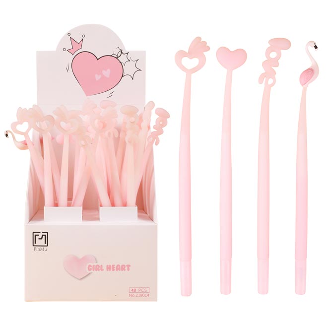 Gelové pero Fancy - Pink Heart má modrou náplň a pastelově růžové tělo, které