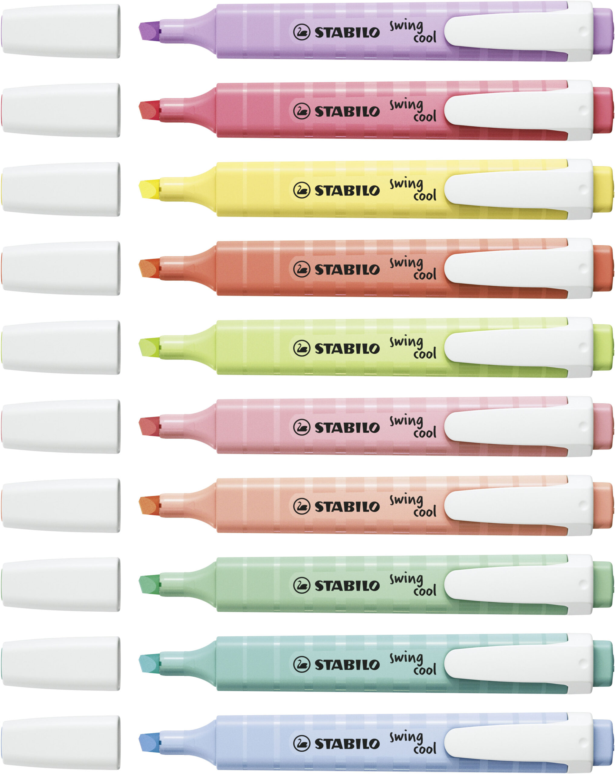 STABILO swing cool Pastel Edition je trendovou lahůdkou, kterou si hned zamilujete. Pro každého, kdo chce zvýrazňovat na cestách a hrát si s jemnými barvami, je STABILO swing cool v pastelových barvách dokonalým nástrojem. STABILO Anti-Dry-Out Technologie poskytuje 4hodinovou ochranu před vysycháním a umožňuje tak plně soustředěnou práci. S praktickým klipsem a úzkým tvarem je dokonalým společníkem na cestách.