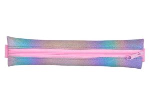 Penál/etue mini v barvách duhy s praktickou gumou. Uprostřed je vybaven zipem, který umožňuje snadné otevírání, a slouží k uložení několika základních psacích potřeb, jako jsou pera, tužky či drobné předměty. Díky praktické gumě lze penál snadno připevnit na obal diáře nebo sešitu, což zajišťuje, že máte psací potřeby vždy po ruce.